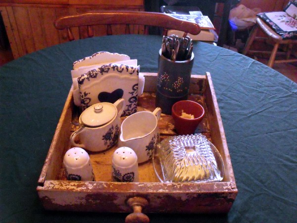 the tablecloth with everything in one handy tray.